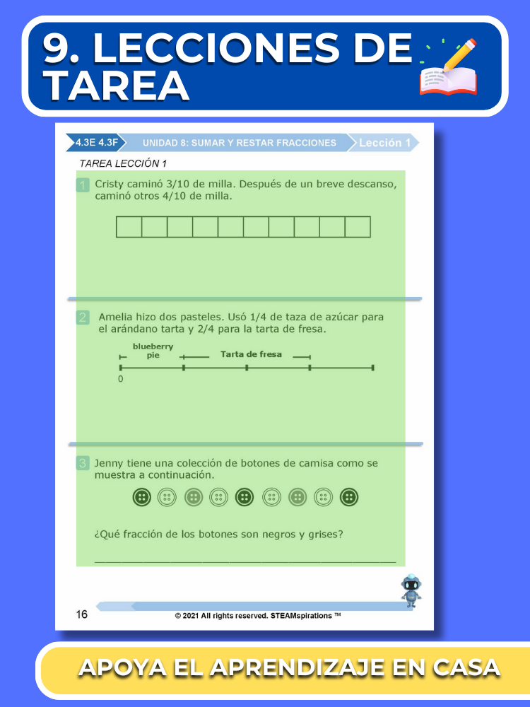 ¡Mathtástico! 4to Grado Unidad 8: SUMAR Y RESTAR FRACCIONES - Libro Electrónico