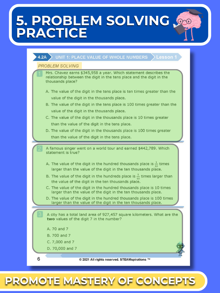 - Problem Solving Process: Each unit introduces students to a thought-provoking problem-solving process that stirs curiosity and enhances analytical thinking skills.