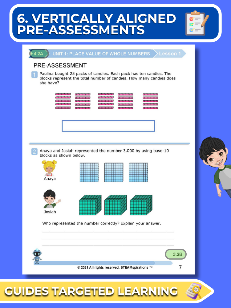 - Vertically Aligned Pre-Assessments: Our approach begins each unit with a succinct pre-assessment that aligns vertically with the new TEKs introduced, enabling focused and effective learning.