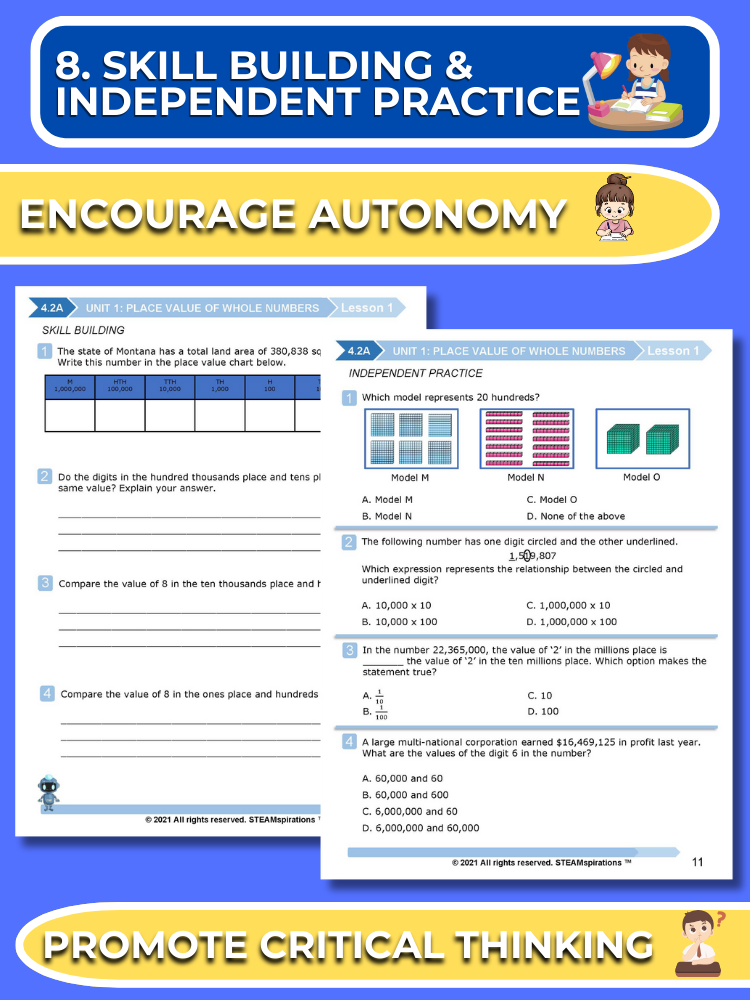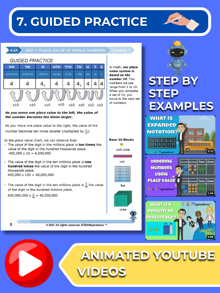 - Guided Practice: Every unit includes guided practice sections designed to effectively teach new TEKs/Skills. These can be utilized alongside our engaging animated instructional videos, enhancing the learning experience.