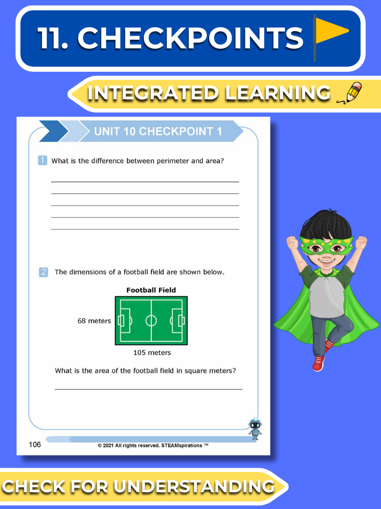 - Checkpoints: At the end of each lesson, checkpoints feature a writing exercise and a problem-solving question to assess comprehension and consolidate learning.