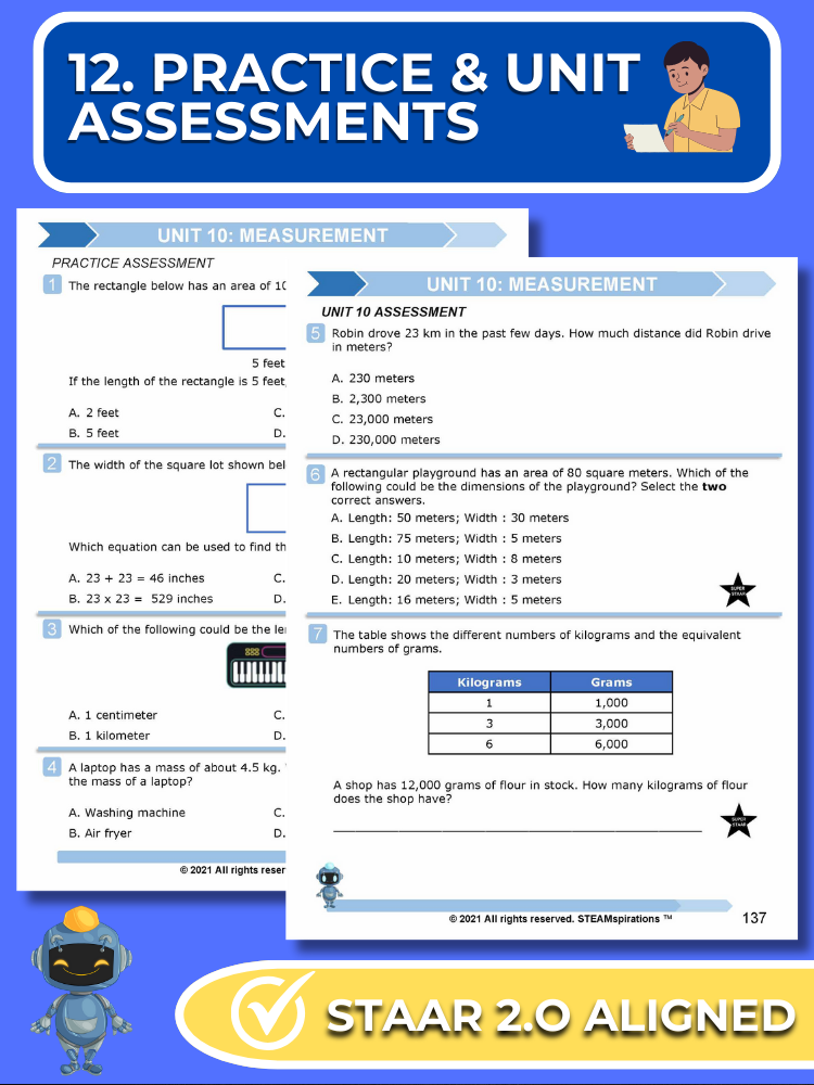 - Practice and Unit Assessments: Reflecting the STAAR test's rigor, each unit includes a practice assessment and a comprehensive unit assessment featuring STAAR 2.0 questions.