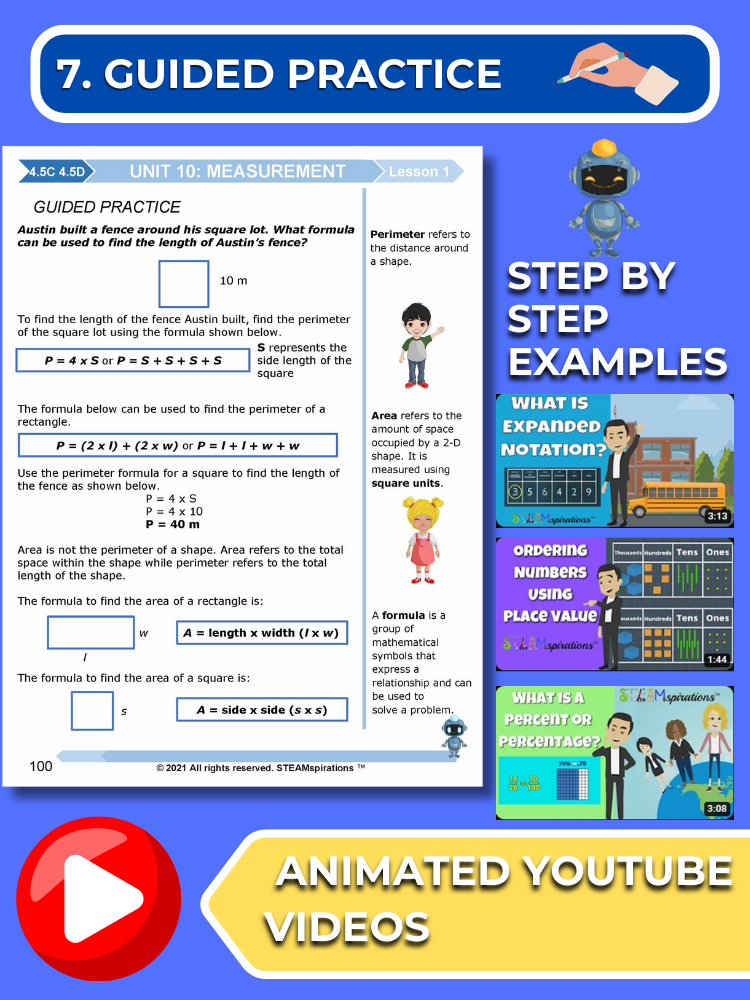 - Guided Practice: Every unit includes guided practice sections designed to effectively teach new TEKs/Skills. These can be utilized alongside our engaging animated instructional videos, enhancing the learning experience.