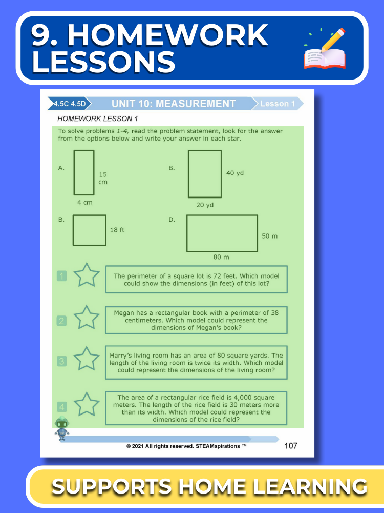 - Skill Building/Independent Practice: Lessons are designed to strengthen students’ math skills and problem-solving abilities through word problems, including STAAR 2.0 questions marked by a small star symbol.