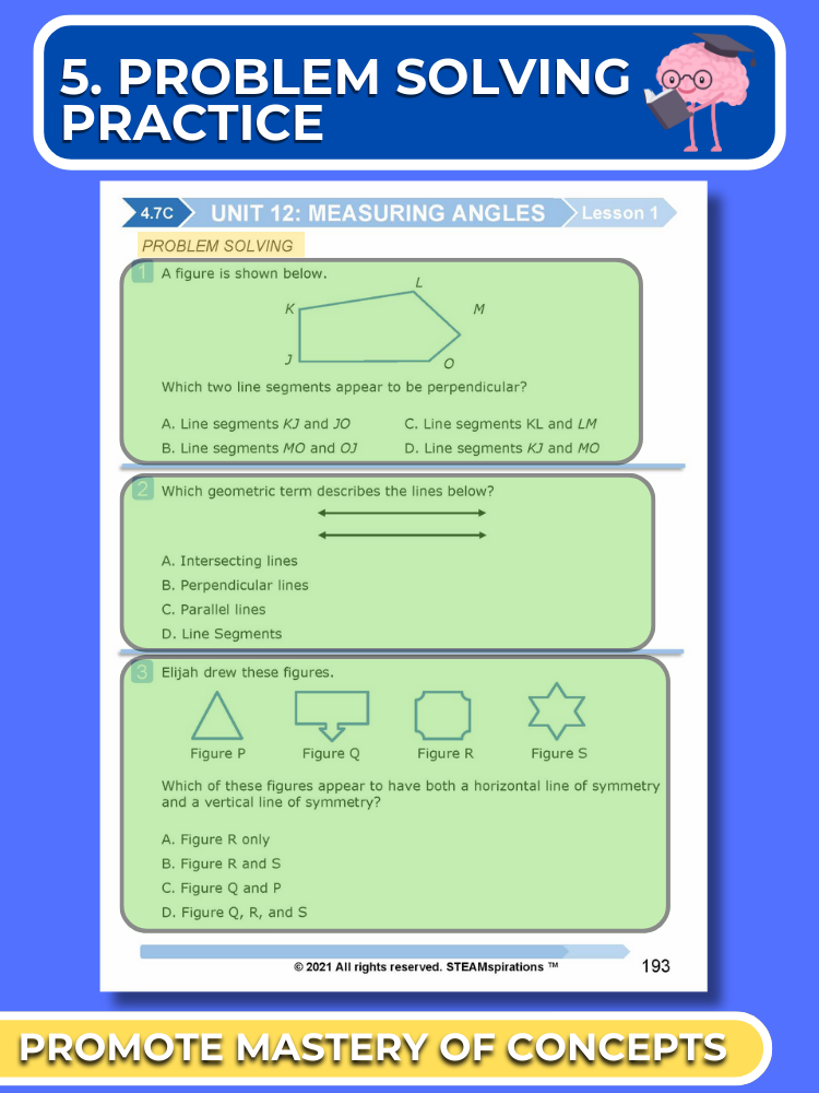 - Problem Solving Process: Each unit introduces students to a thought-provoking problem-solving process that stirs curiosity and enhances analytical thinking skills.
