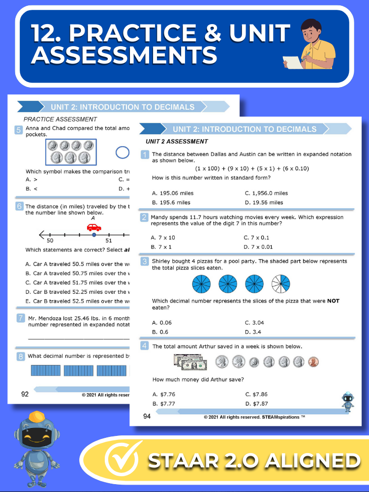 - Practice and Unit Assessments: Reflecting the STAAR test's rigor, each unit includes a practice assessment and a comprehensive unit assessment featuring STAAR 2.0 questions.