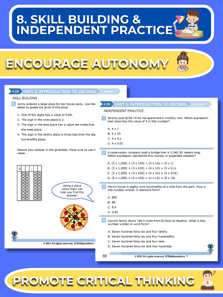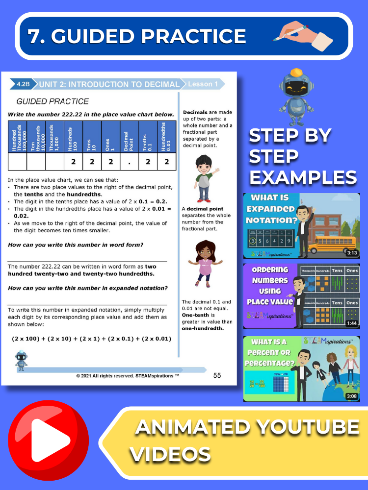 - Guided Practice: Every unit includes guided practice sections designed to effectively teach new TEKs/Skills. These can be utilized alongside our engaging animated instructional videos, enhancing the learning experience.