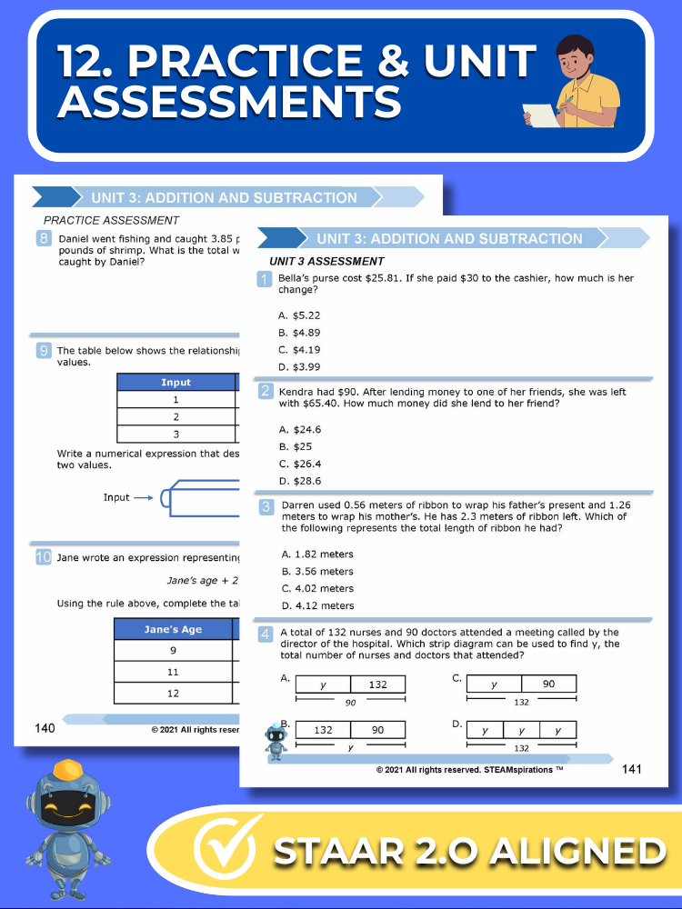 - Practice and Unit Assessments: Reflecting the STAAR test's rigor, each unit includes a practice assessment and a comprehensive unit assessment featuring STAAR 2.0 questions.