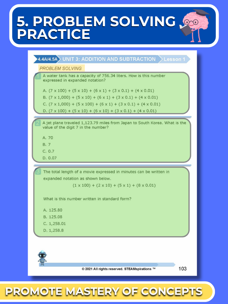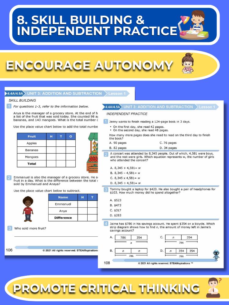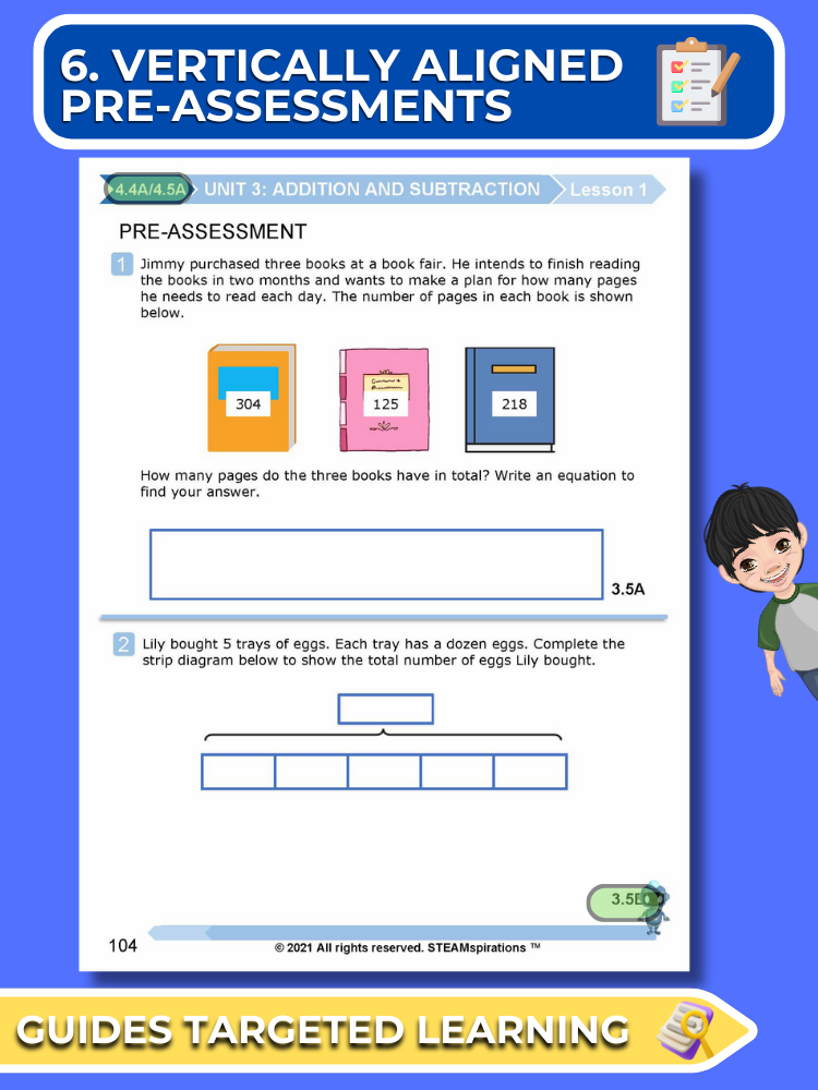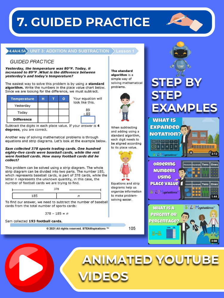 - Guided Practice: Every unit includes guided practice sections designed to effectively teach new TEKs/Skills. These can be utilized alongside our engaging animated instructional videos, enhancing the learning experience.