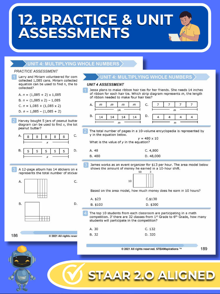 - Practice and Unit Assessments: Reflecting the STAAR test's rigor, each unit includes a practice assessment and a comprehensive unit assessment featuring STAAR 2.0 questions.