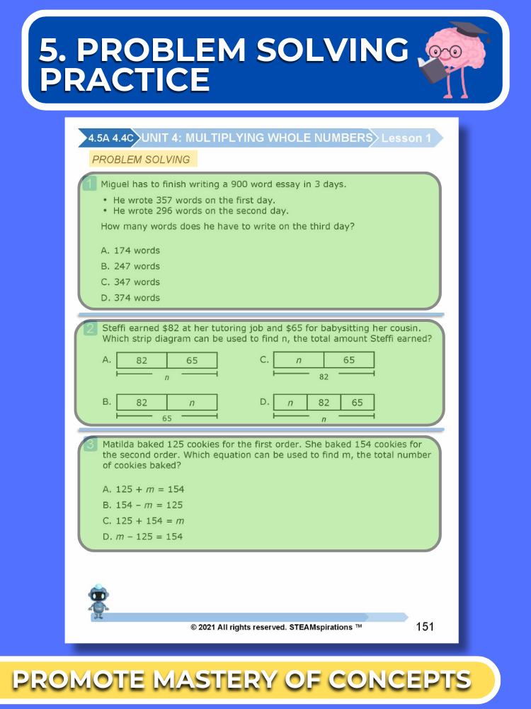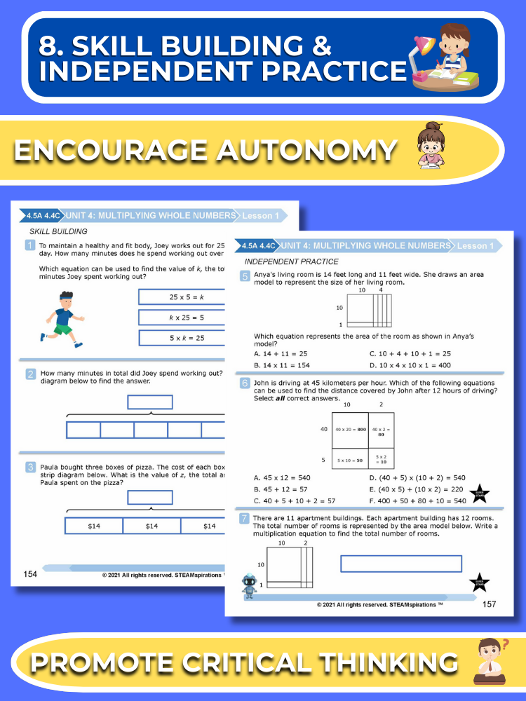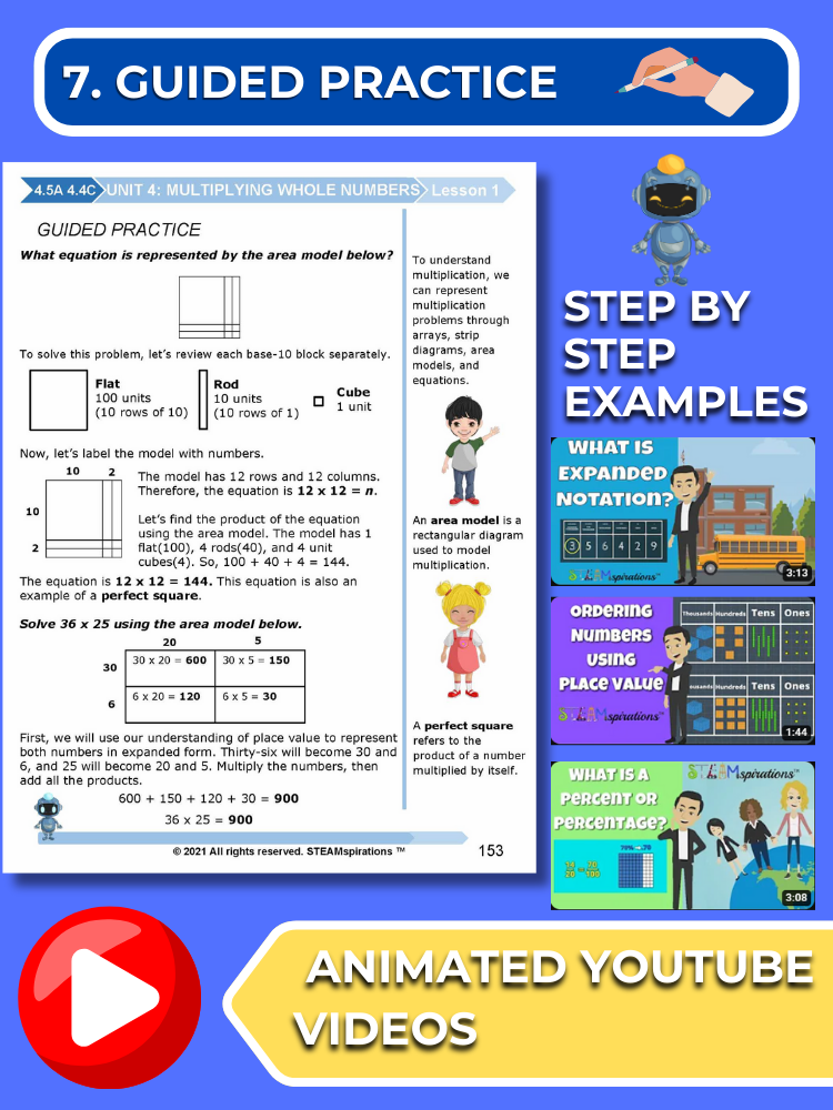 - Guided Practice: Every unit includes guided practice sections designed to effectively teach new TEKs/Skills. These can be utilized alongside our engaging animated instructional videos, enhancing the learning experience.