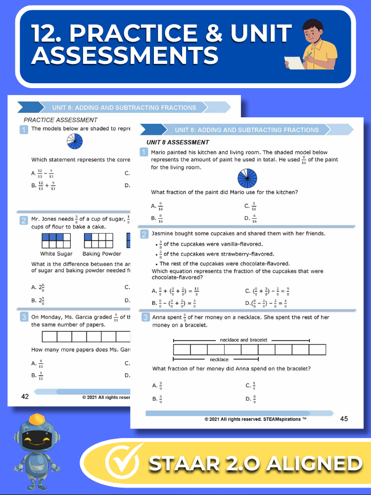 - Practice and Unit Assessments: Reflecting the STAAR test's rigor, each unit includes a practice assessment and a comprehensive unit assessment featuring STAAR 2.0 questions.