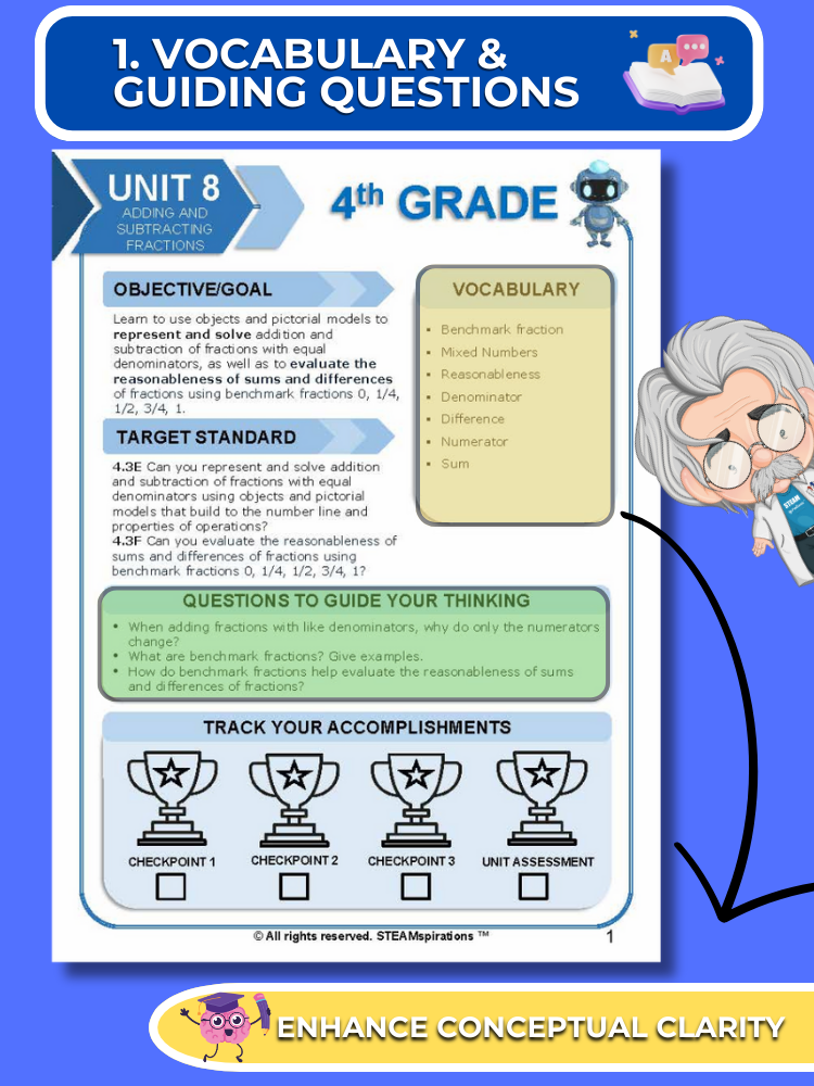 Mathtastico! 4th Grade Math Bundle Unit 8 Adding & Subtracting Fractions - E-Book