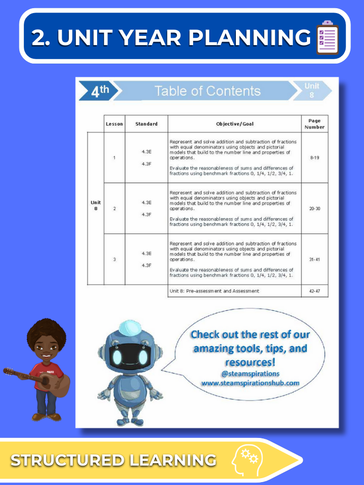 - Unit Year Planning: Our curriculum breaks down each TEK into manageable segments, scaffolding learning for complete mastery. This methodical approach allows students to fully understand each part of the TEK as it is taught throughout the lessons, making the process more straightforward for educators.