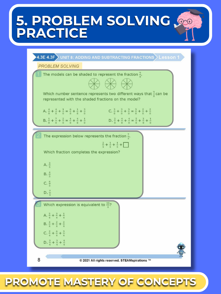 - Problem Solving Process: Each unit introduces students to a thought-provoking problem-solving process that stirs curiosity and enhances analytical thinking skills.