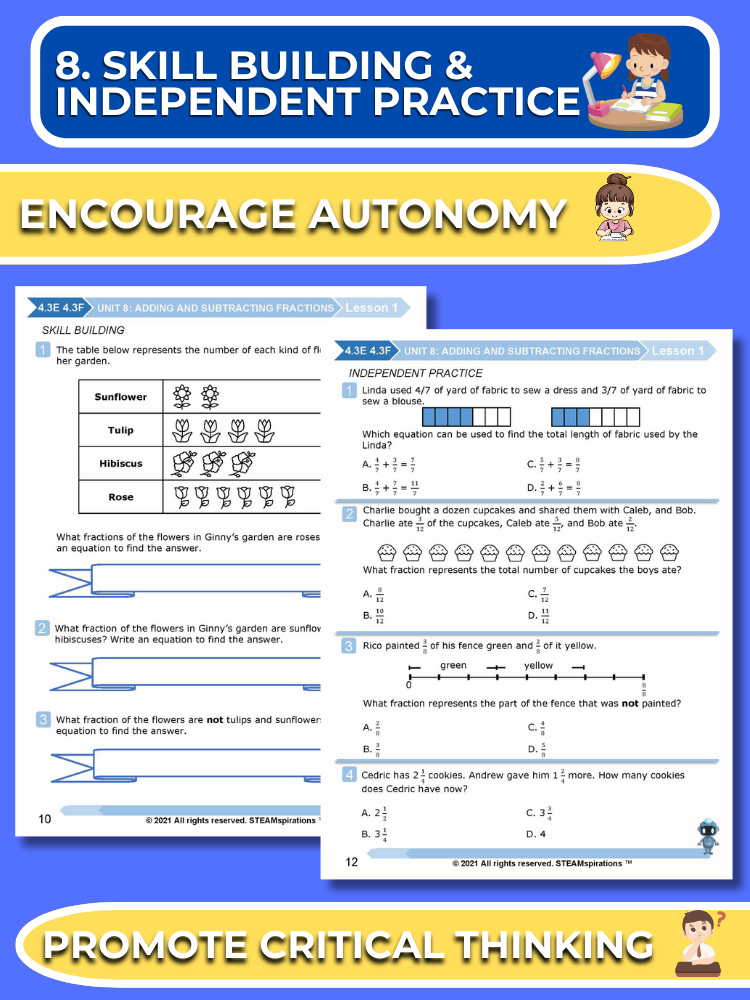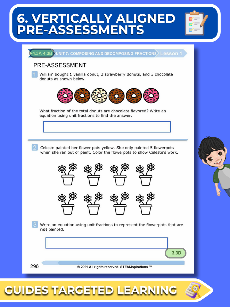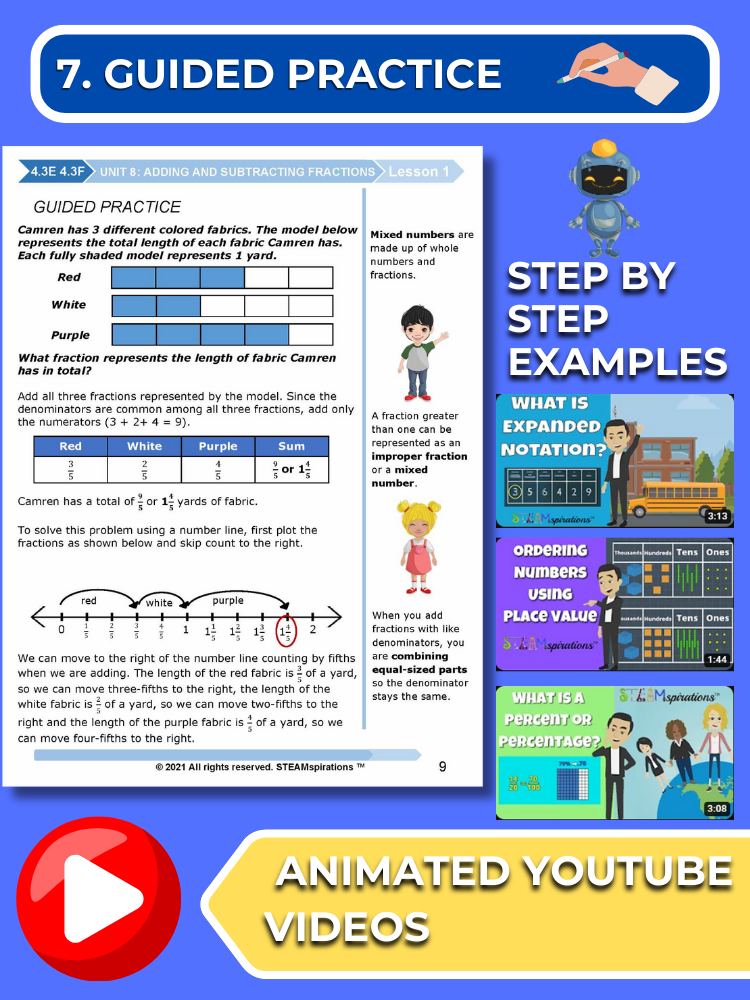 - Guided Practice: Every unit includes guided practice sections designed to effectively teach new TEKs/Skills. These can be utilized alongside our engaging animated instructional videos, enhancing the learning experience.