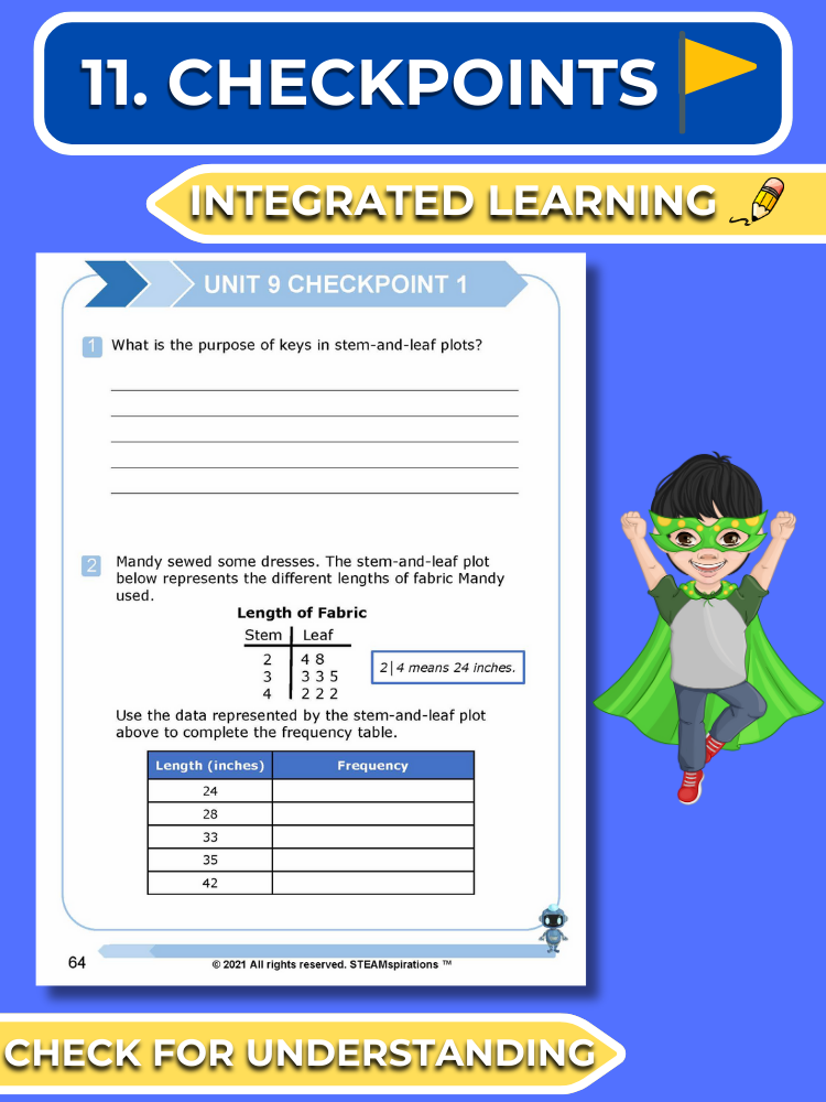 - Checkpoints: At the end of each lesson, checkpoints feature a writing exercise and a problem-solving question to assess comprehension and consolidate learning.