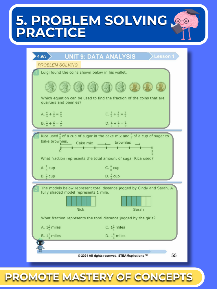 - Problem Solving Process: Each unit introduces students to a thought-provoking problem-solving process that stirs curiosity and enhances analytical thinking skills.