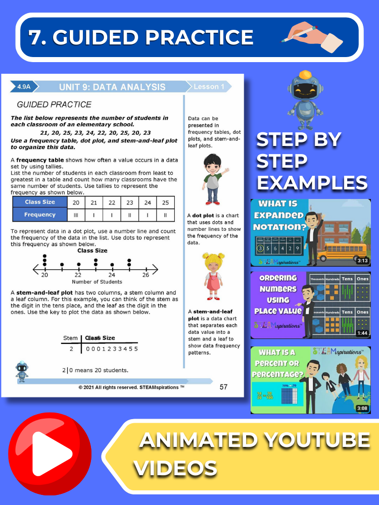 - Guided Practice: Every unit includes guided practice sections designed to effectively teach new TEKs/Skills. These can be utilized alongside our engaging animated instructional videos, enhancing the learning experience.