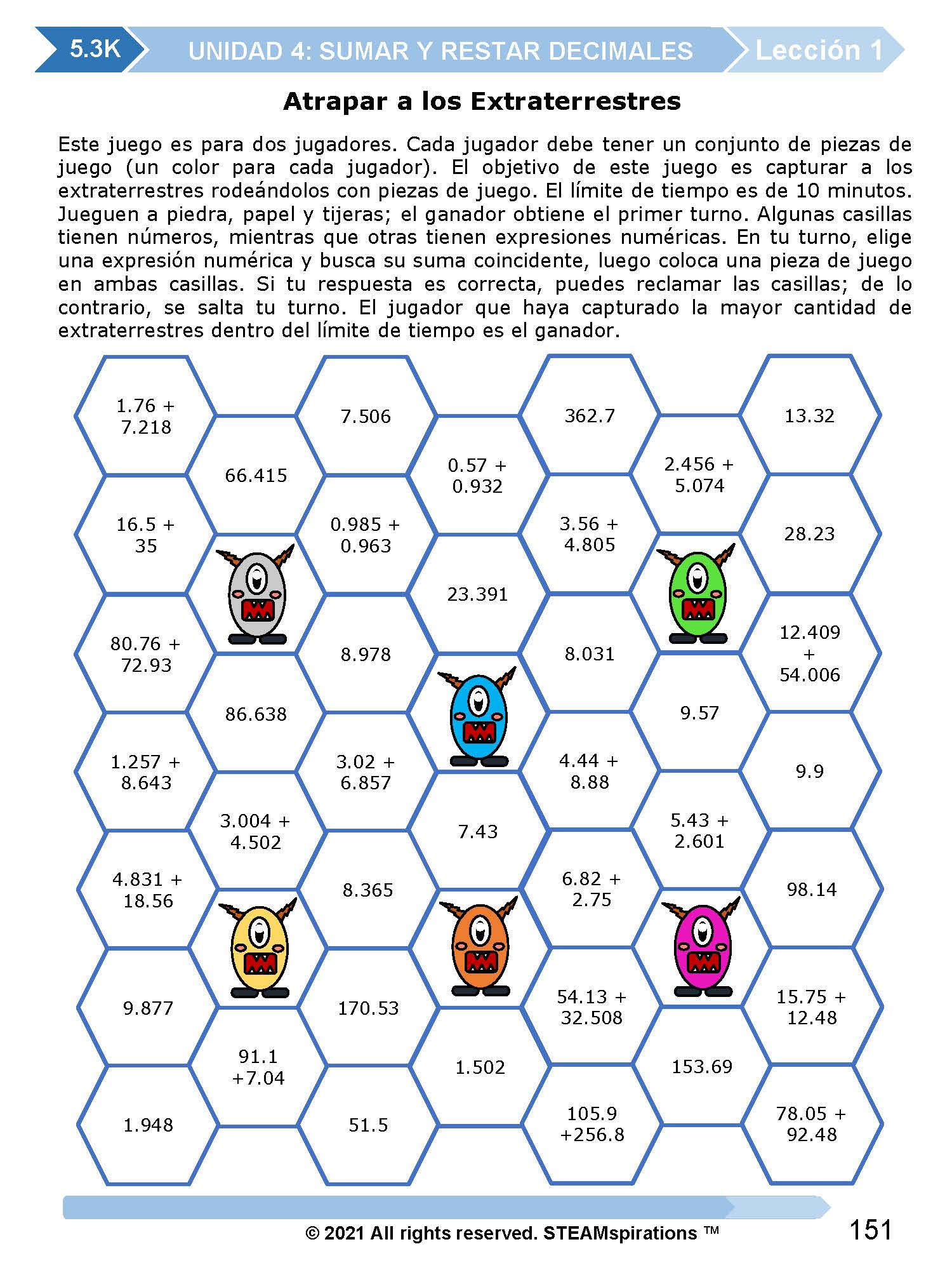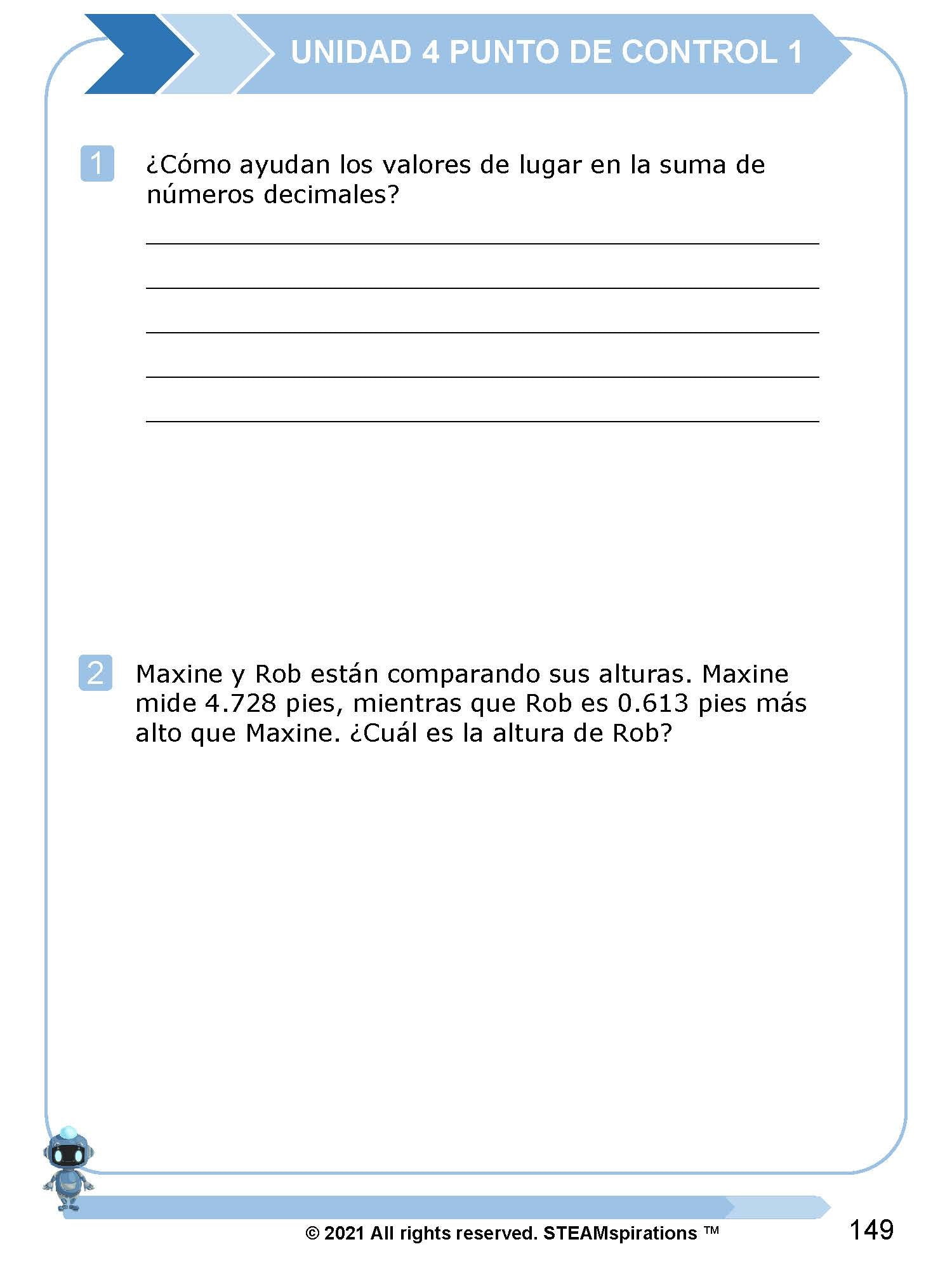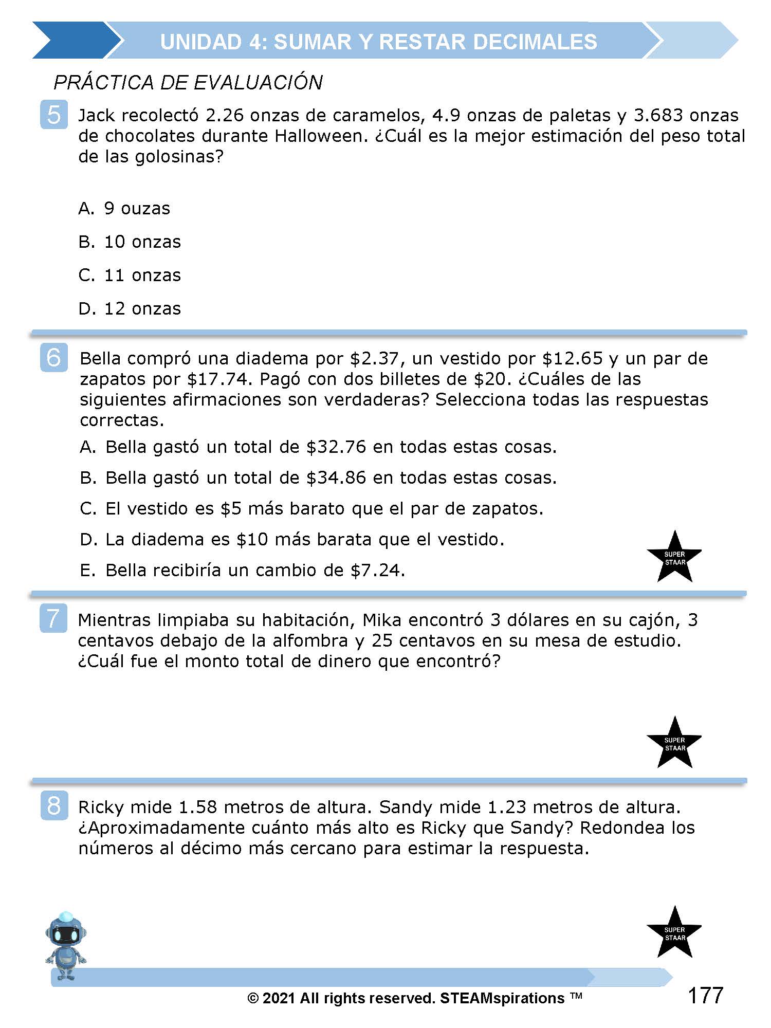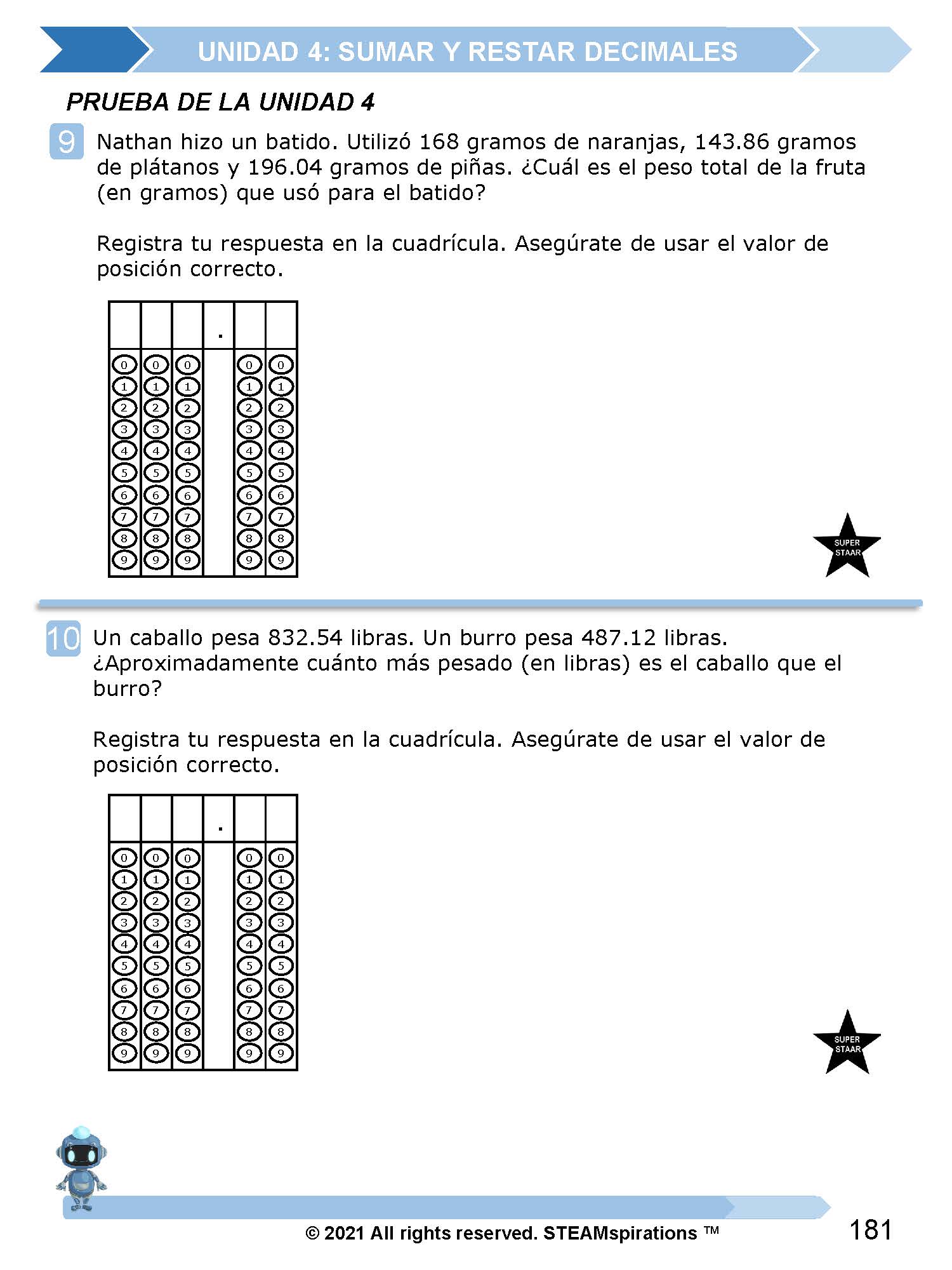 ¡Mathtástico! 5to Grado Unidad 4: SUMAR Y RESTAR DECIMALES - Libro Electrónico