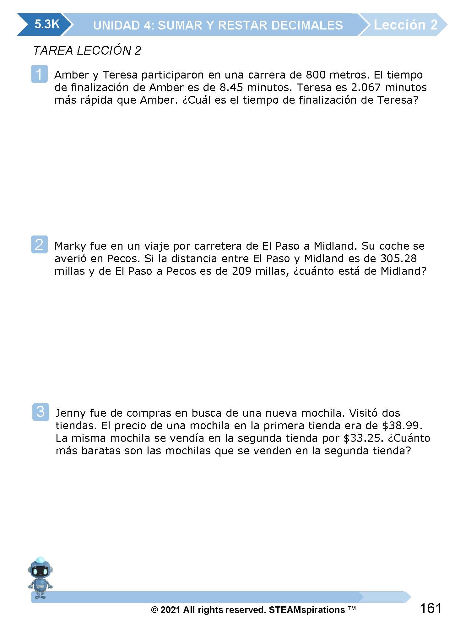 Construcción de Habilidades/Práctica Independiente: Las lecciones están diseñadas para fortalecer las habilidades matemáticas y las habilidades de resolución de problemas de los estudiantes a través de problemas de palabras, incluyendo preguntas STAAR 2.0 marcadas con un pequeño símbolo de estrella.