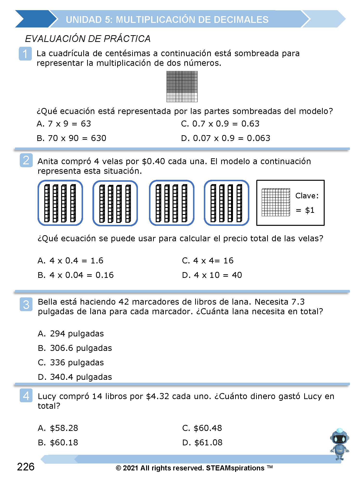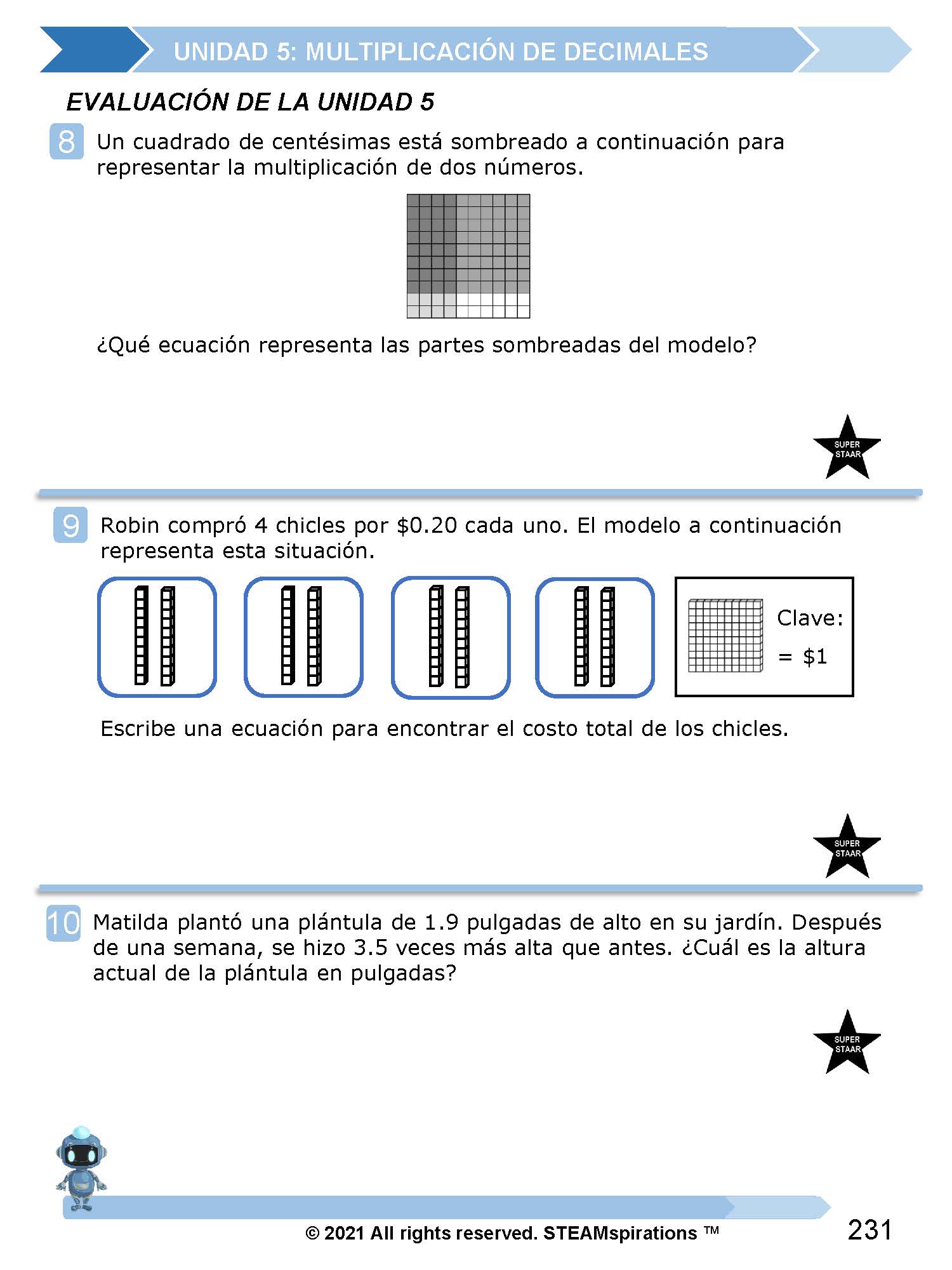¡Mathtástico! 5to Grado Unidad 5: MULTIPLICANDO DECIMALES - Libro Electrónico