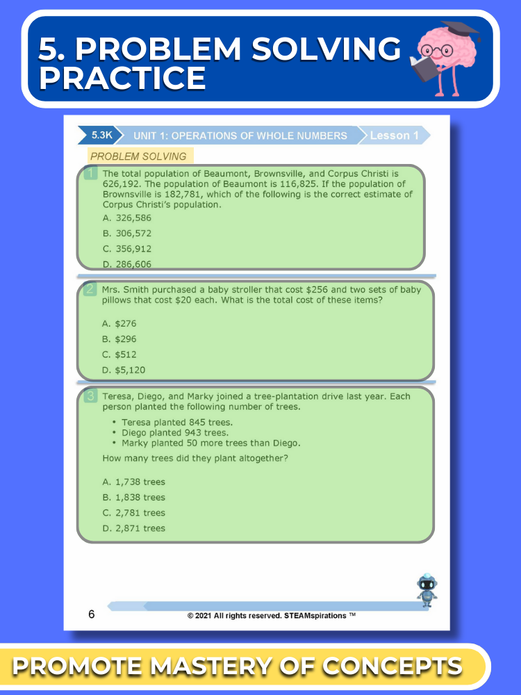 - Problem Solving Process: Each unit introduces students to a thought-provoking problem-solving process that stirs curiosity and enhances analytical thinking skills.