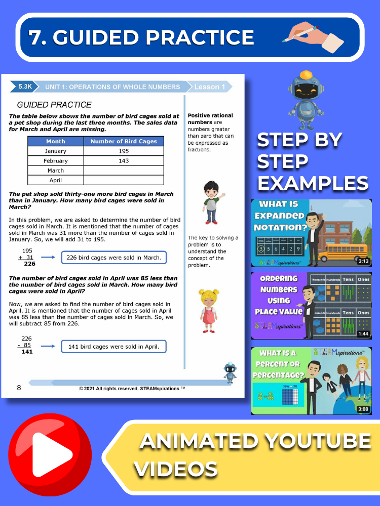 - Guided Practice: Every unit includes guided practice sections designed to effectively teach new TEKs/Skills. These can be utilized alongside our engaging animated instructional videos, enhancing the learning experience.