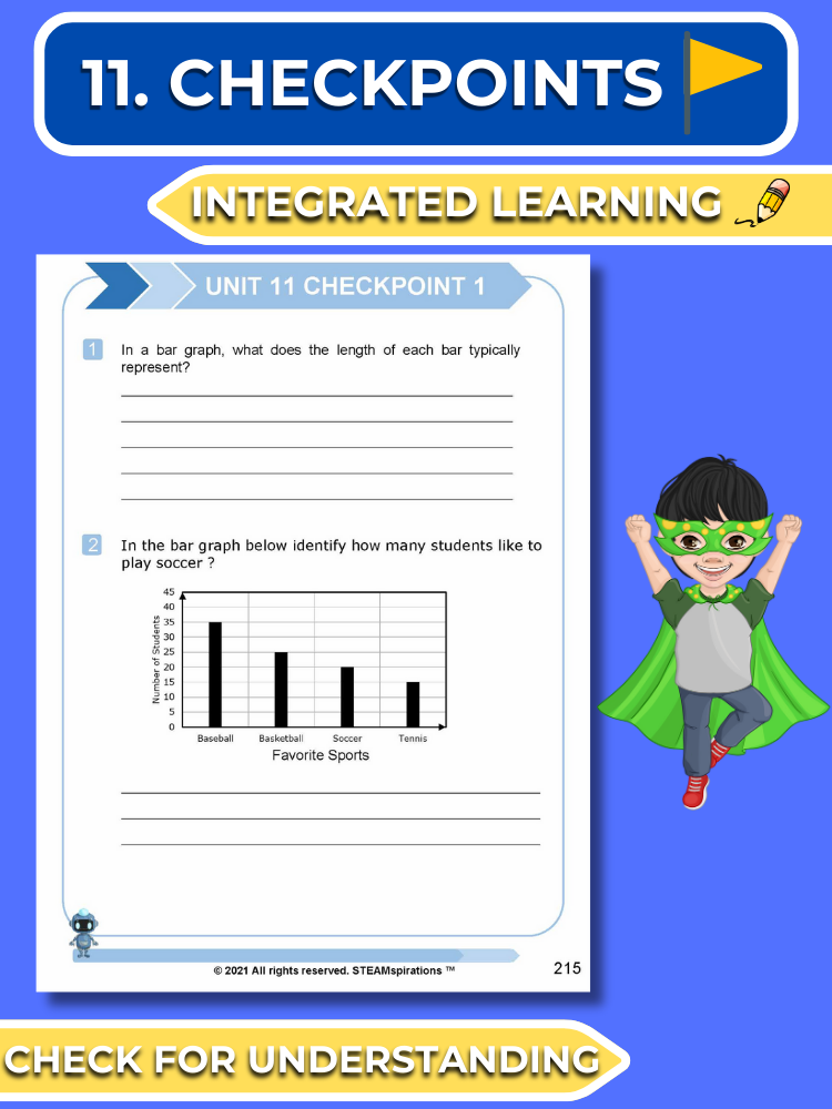 - Checkpoints: At the end of each lesson, checkpoints feature a writing exercise and a problem-solving question to assess comprehension and consolidate learning.