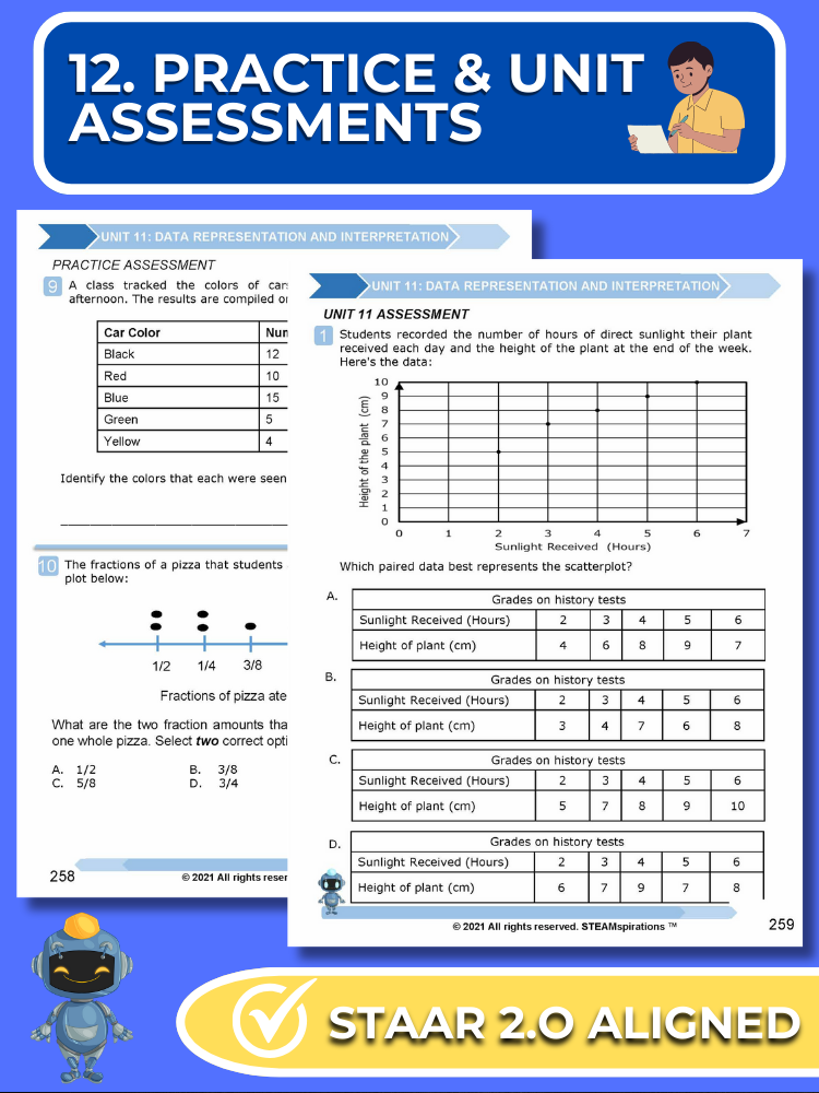 Practice and Unit Assessments: Reflecting the STAAR test's rigor, each unit includes a practice assessment and a comprehensive unit assessment featuring STAAR 2.0 questions.