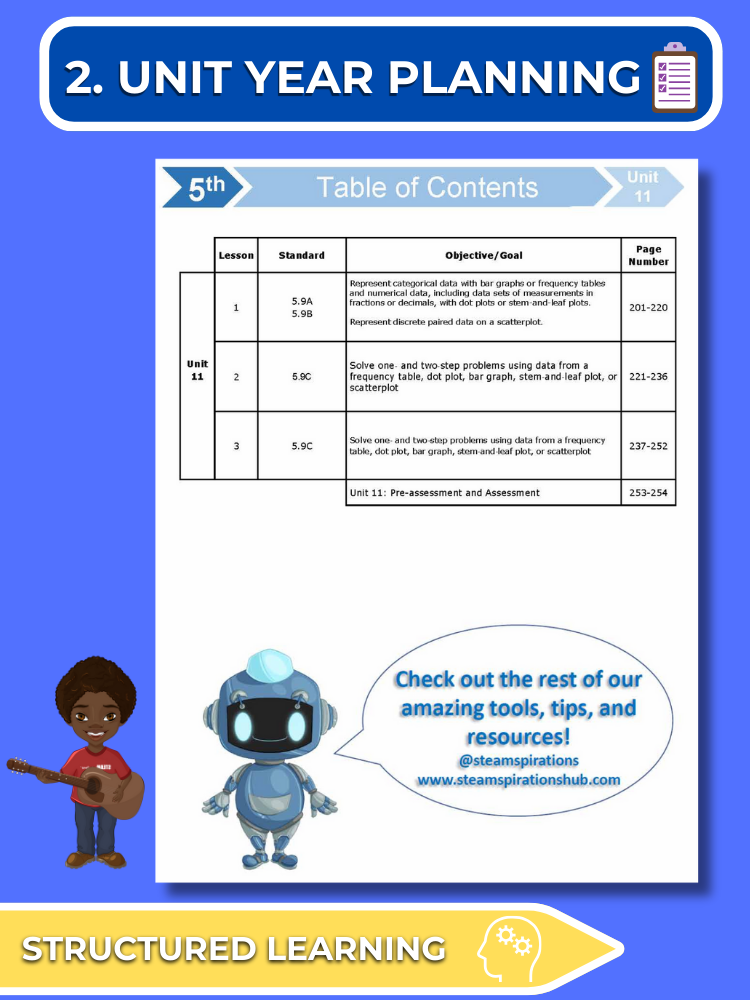 - Unit Year Planning: Our curriculum breaks down each TEK into manageable segments, scaffolding learning for complete mastery. This methodical approach allows students to fully understand each part of the TEK as it is taught throughout the lessons, making the process more straightforward for educators.