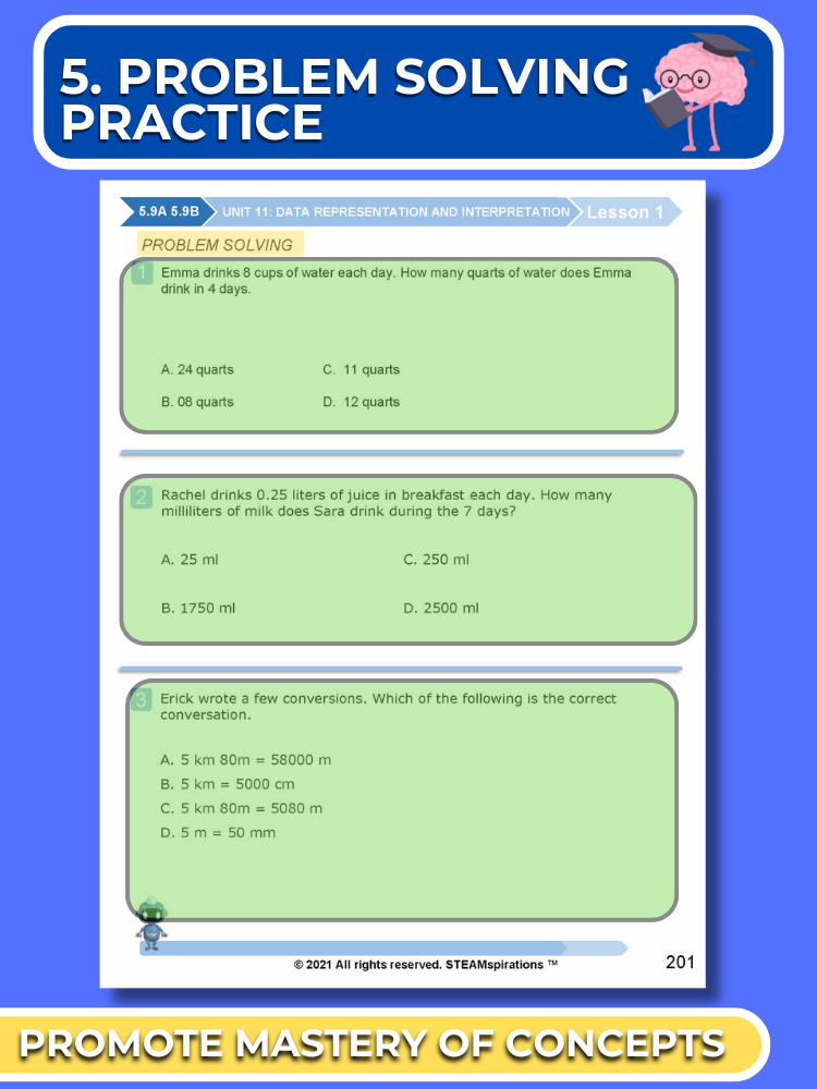 - Problem Solving Process: Each unit introduces students to a thought-provoking problem-solving process that stirs curiosity and enhances analytical thinking skills.
