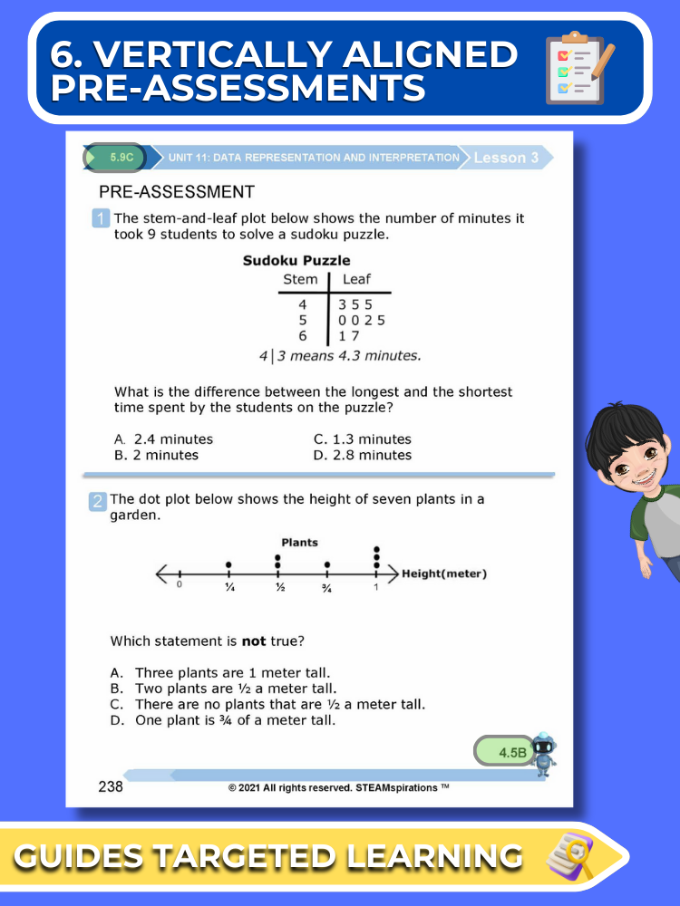 - Vertically Aligned Pre-Assessments: Our approach begins each unit with a succinct pre-assessment that aligns vertically with the new TEKs introduced, enabling focused and effective learning.