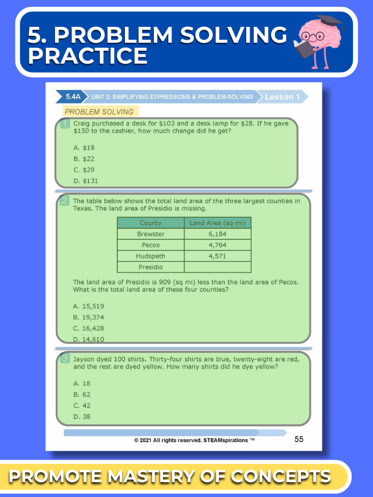 - Problem Solving Process: Each unit introduces students to a thought-provoking problem-solving process that stirs curiosity and enhances analytical thinking skills.