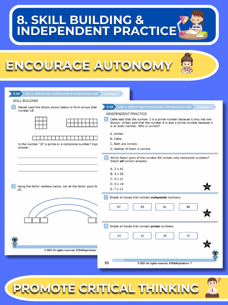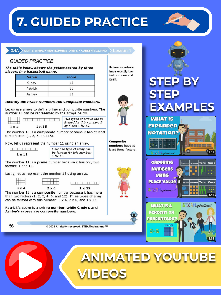 - Guided Practice: Every unit includes guided practice sections designed to effectively teach new TEKs/Skills. These can be utilized alongside our engaging animated instructional videos, enhancing the learning experience.