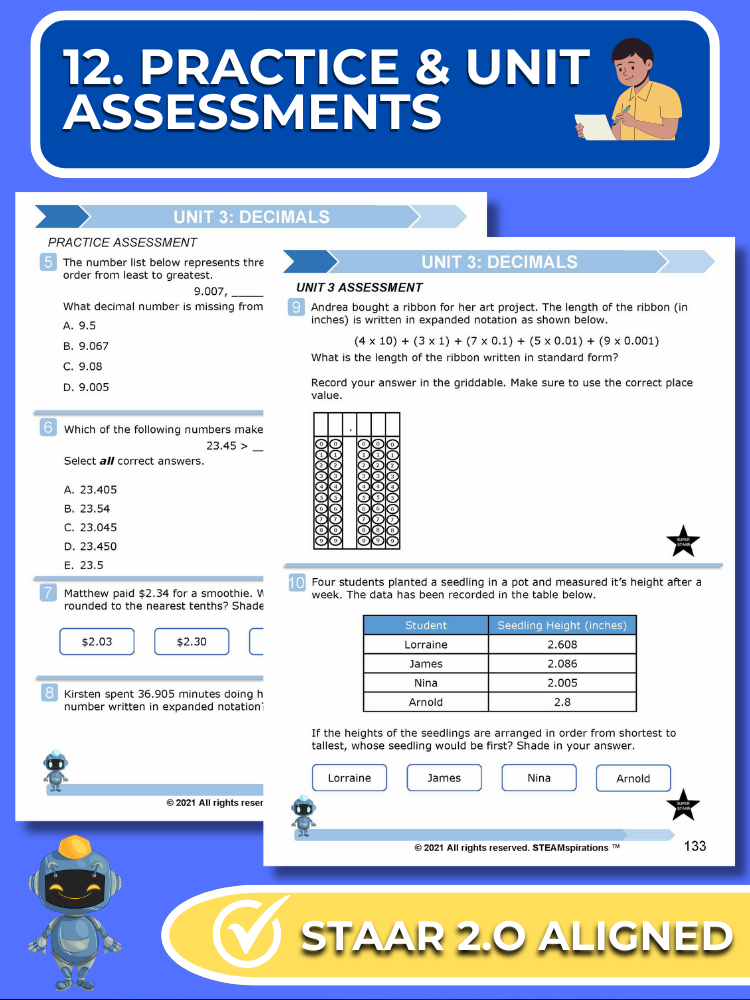 Practice and Unit Assessments: Reflecting the STAAR test's rigor, each unit includes a practice assessment and a comprehensive unit assessment featuring STAAR 2.0 questions.