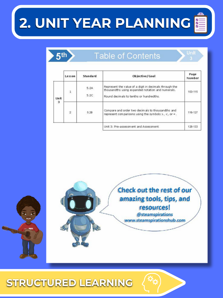- Unit Year Planning: Our curriculum breaks down each TEK into manageable segments, scaffolding learning for complete mastery. This methodical approach allows students to fully understand each part of the TEK as it is taught throughout the lessons, making the process more straightforward for educators.