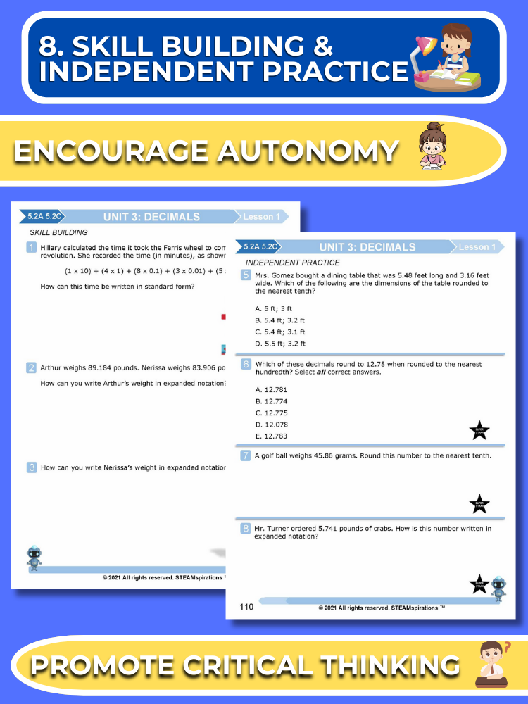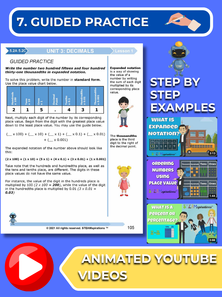 - Guided Practice: Every unit includes guided practice sections designed to effectively teach new TEKs/Skills. These can be utilized alongside our engaging animated instructional videos, enhancing the learning experience.