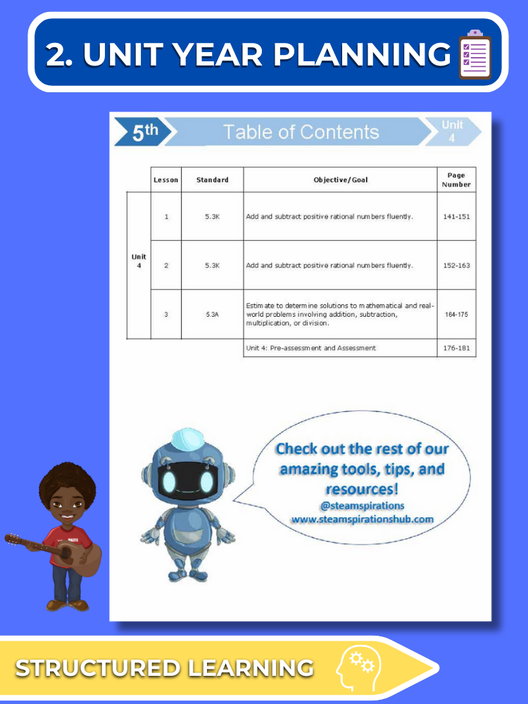 - Unit Year Planning: Our curriculum breaks down each TEK into manageable segments, scaffolding learning for complete mastery. This methodical approach allows students to fully understand each part of the TEK as it is taught throughout the lessons, making the process more straightforward for educators.