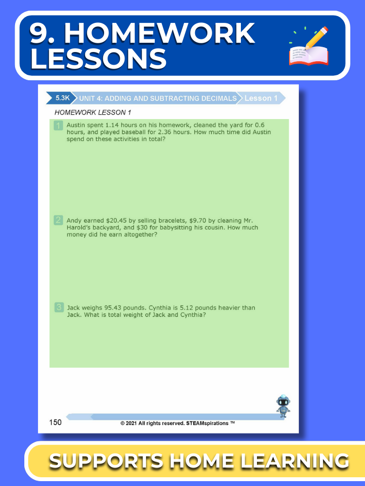 - Homework: We incorporate homework into the lessons to enable students to reinforce the concepts and skills learned in the classroom at home.