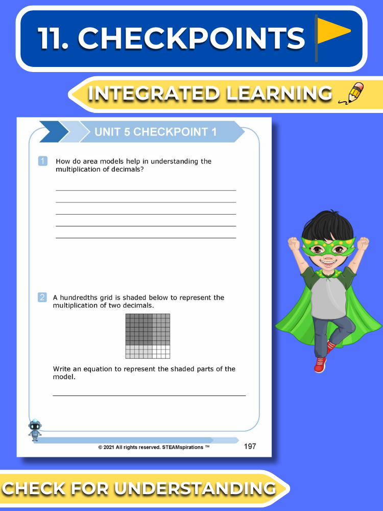 - Checkpoints: At the end of each lesson, checkpoints feature a writing exercise and a problem-solving question to assess comprehension and consolidate learning.