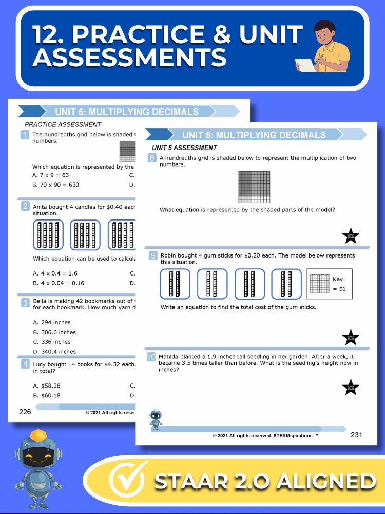 Practice and Unit Assessments: Reflecting the STAAR test's rigor, each unit includes a practice assessment and a comprehensive unit assessment featuring STAAR 2.0 questions.