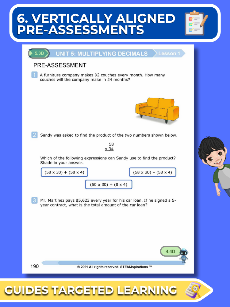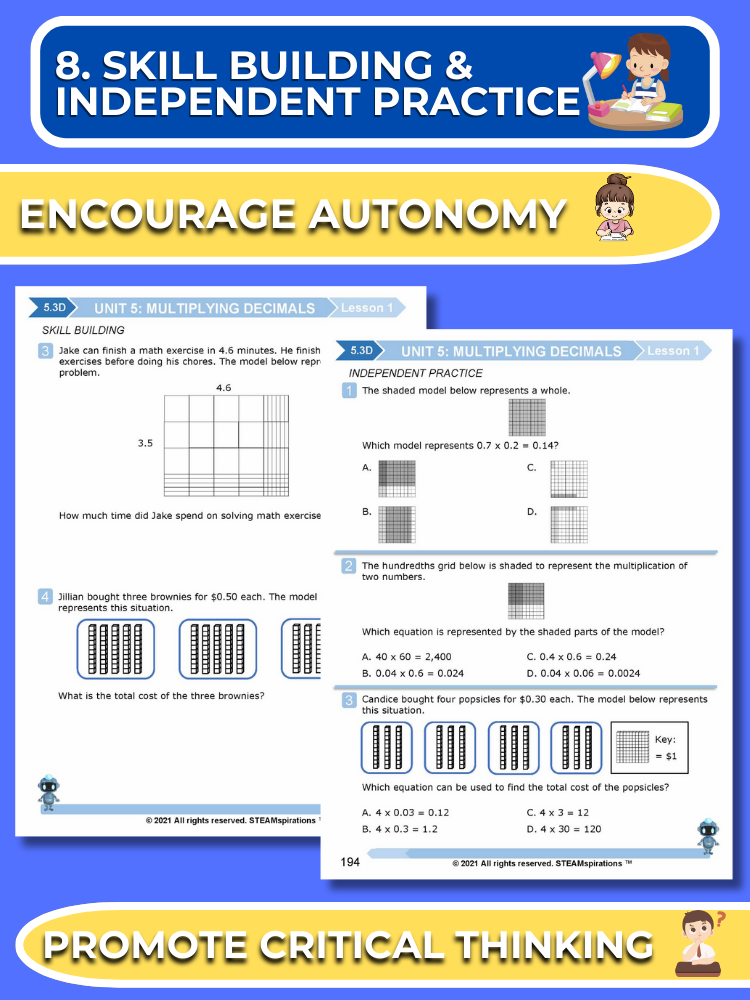 - Guided Practice: Every unit includes guided practice sections designed to effectively teach new TEKs/Skills. These can be utilized alongside our engaging animated instructional videos, enhancing the learning experience.