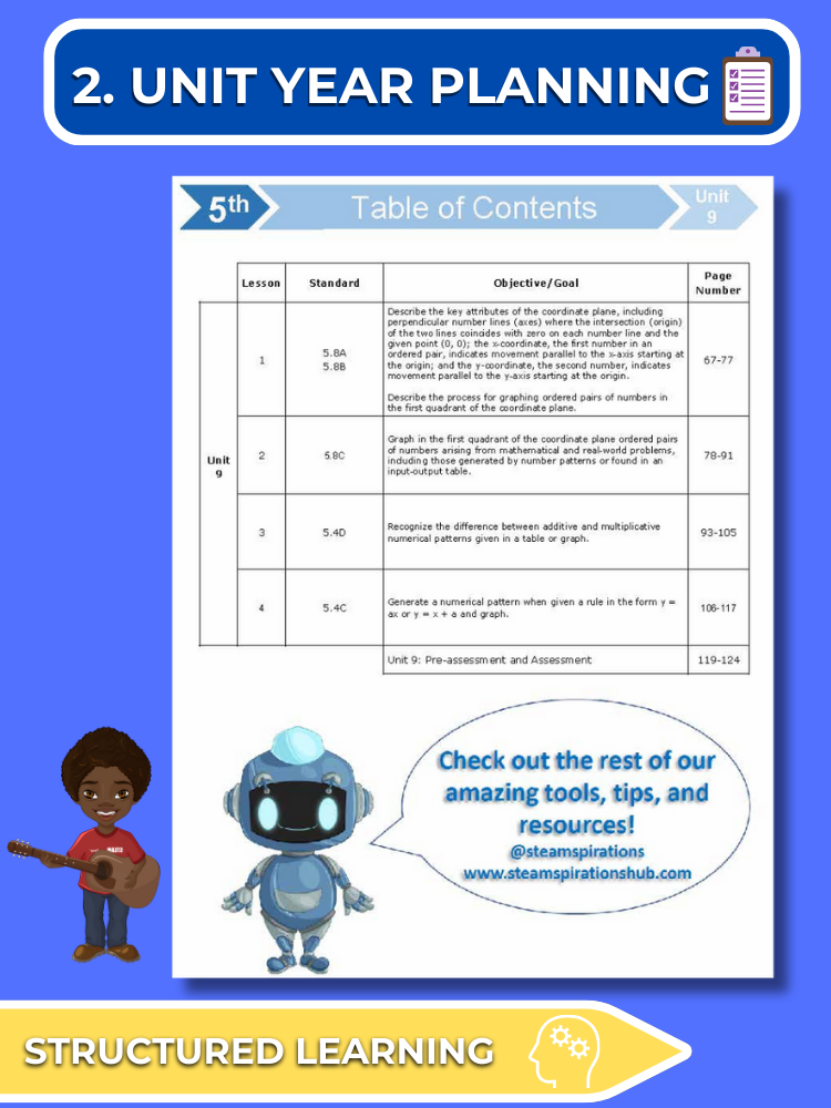 - Unit Year Planning: Our curriculum breaks down each TEK into manageable segments, scaffolding learning for complete mastery. This methodical approach allows students to fully understand each part of the TEK as it is taught throughout the lessons, making the process more straightforward for educators.