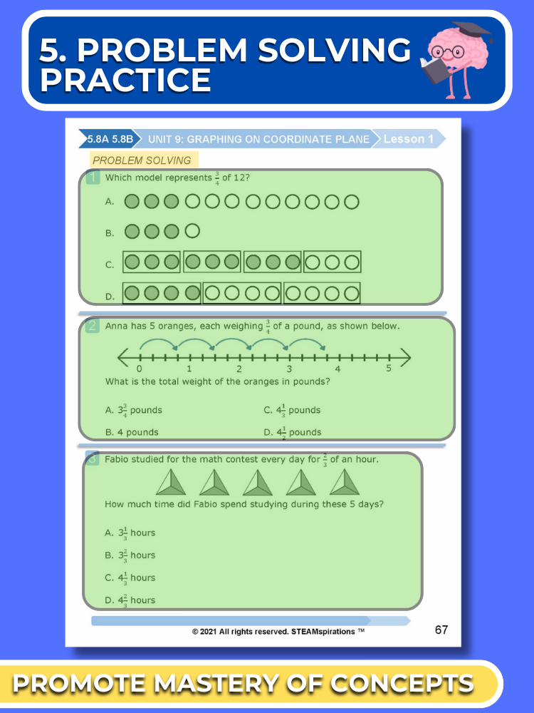- Problem Solving Process: Each unit introduces students to a thought-provoking problem-solving process that stirs curiosity and enhances analytical thinking skills.
