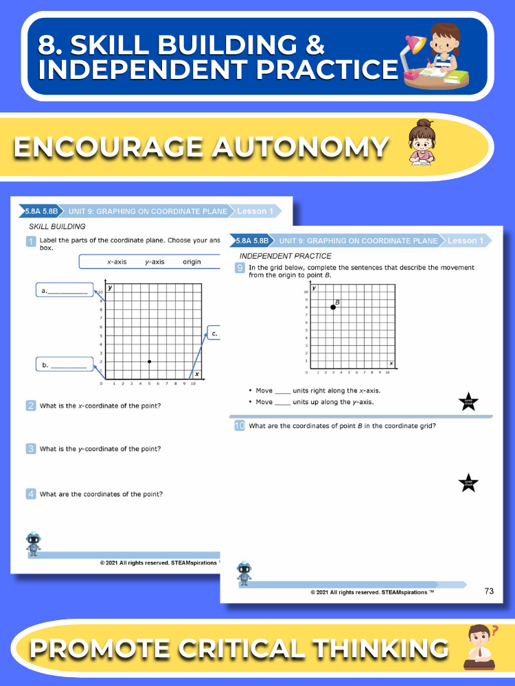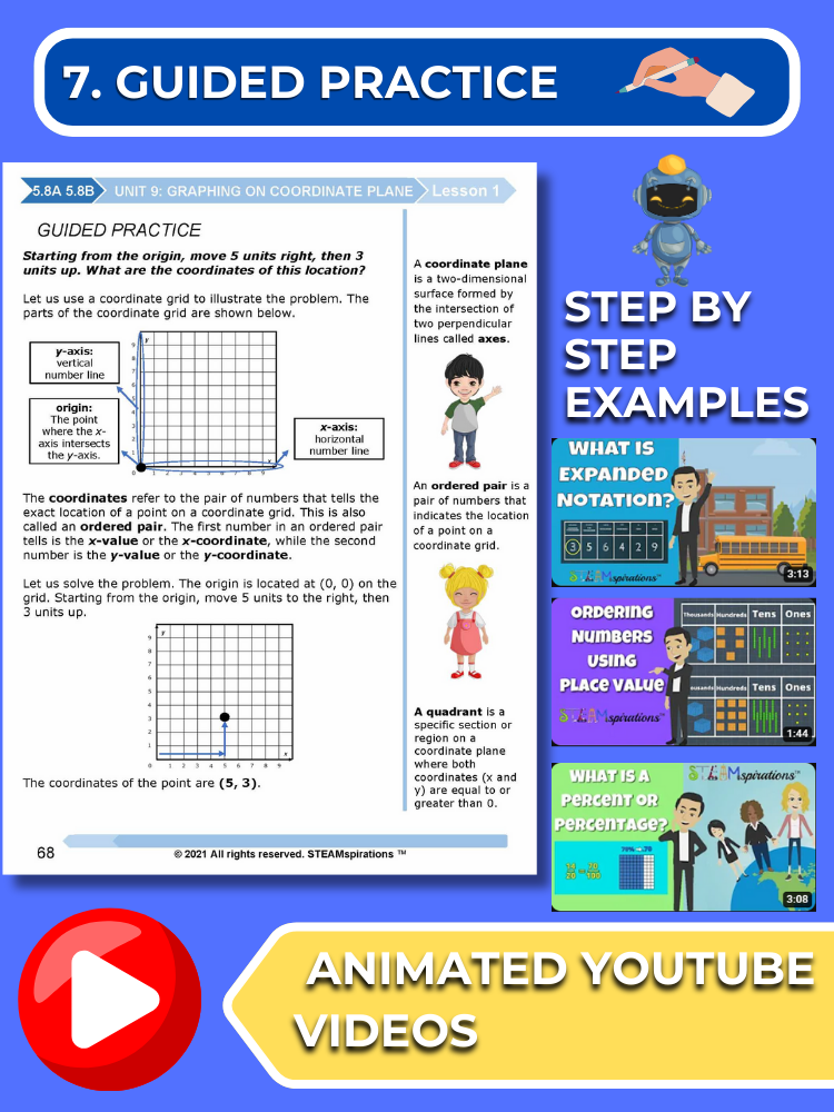 - Guided Practice: Every unit includes guided practice sections designed to effectively teach new TEKs/Skills. These can be utilized alongside our engaging animated instructional videos, enhancing the learning experience.