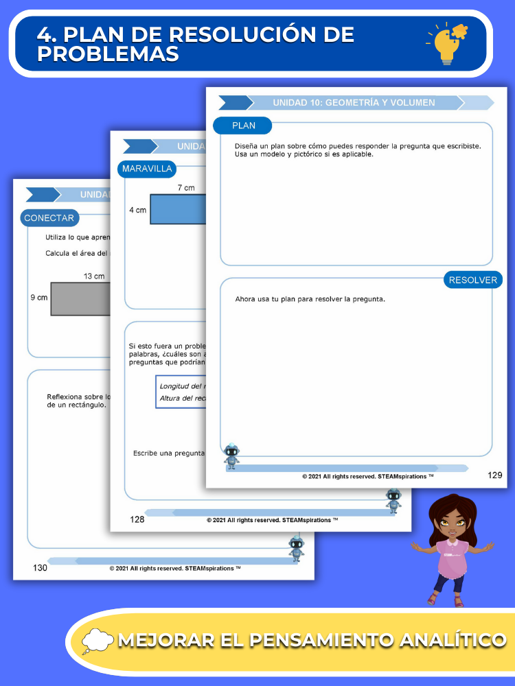 Proceso de Resolución de Problemas: Cada unidad presenta a los estudiantes un proceso de resolución de problemas que provoca curiosidad y mejora las habilidades de pensamiento analítico.