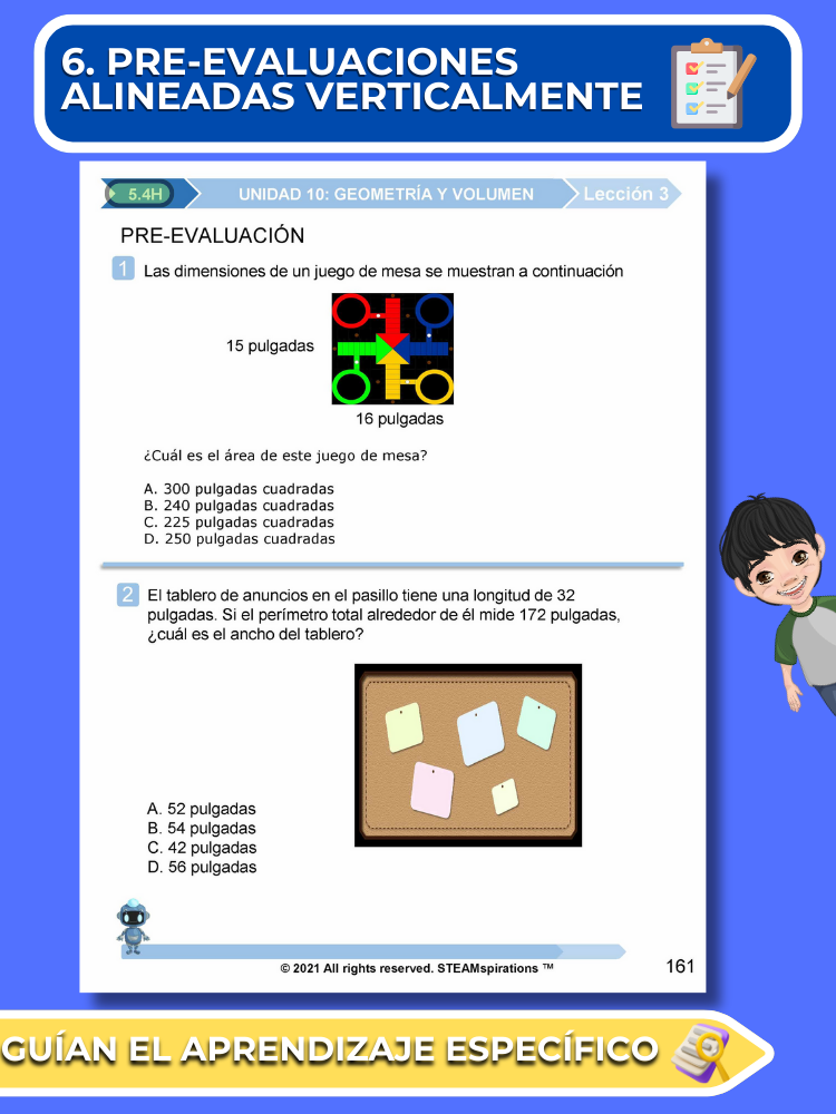 Pre-Evaluaciones Alineadas Verticalmente: Nuestro enfoque comienza cada unidad con una pre-evaluación sucinta que se alinea verticalmente con los nuevos TEKs introducidos, permitiendo un aprendizaje enfocado y efectivo.