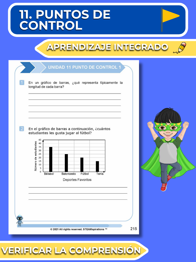 Puntos de Control: Al final de cada lección, los puntos de control incluyen un ejercicio de escritura y una pregunta de resolución de problemas para evaluar la comprensión y consolidar el aprendizaje.