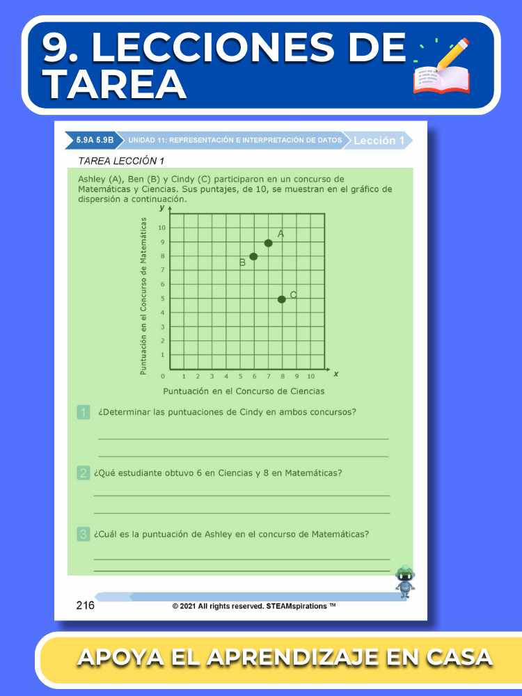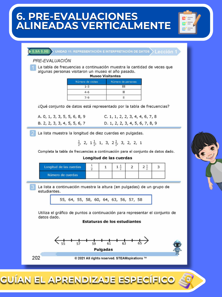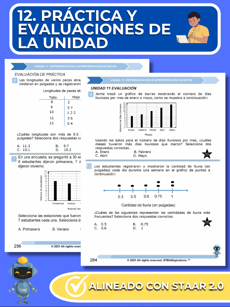 Prácticas y Evaluaciones de Unidades: Reflejando el rigor del examen STAAR, cada unidad incluye una evaluación de práctica y una evaluación de unidad integral con preguntas STAAR 2.0.